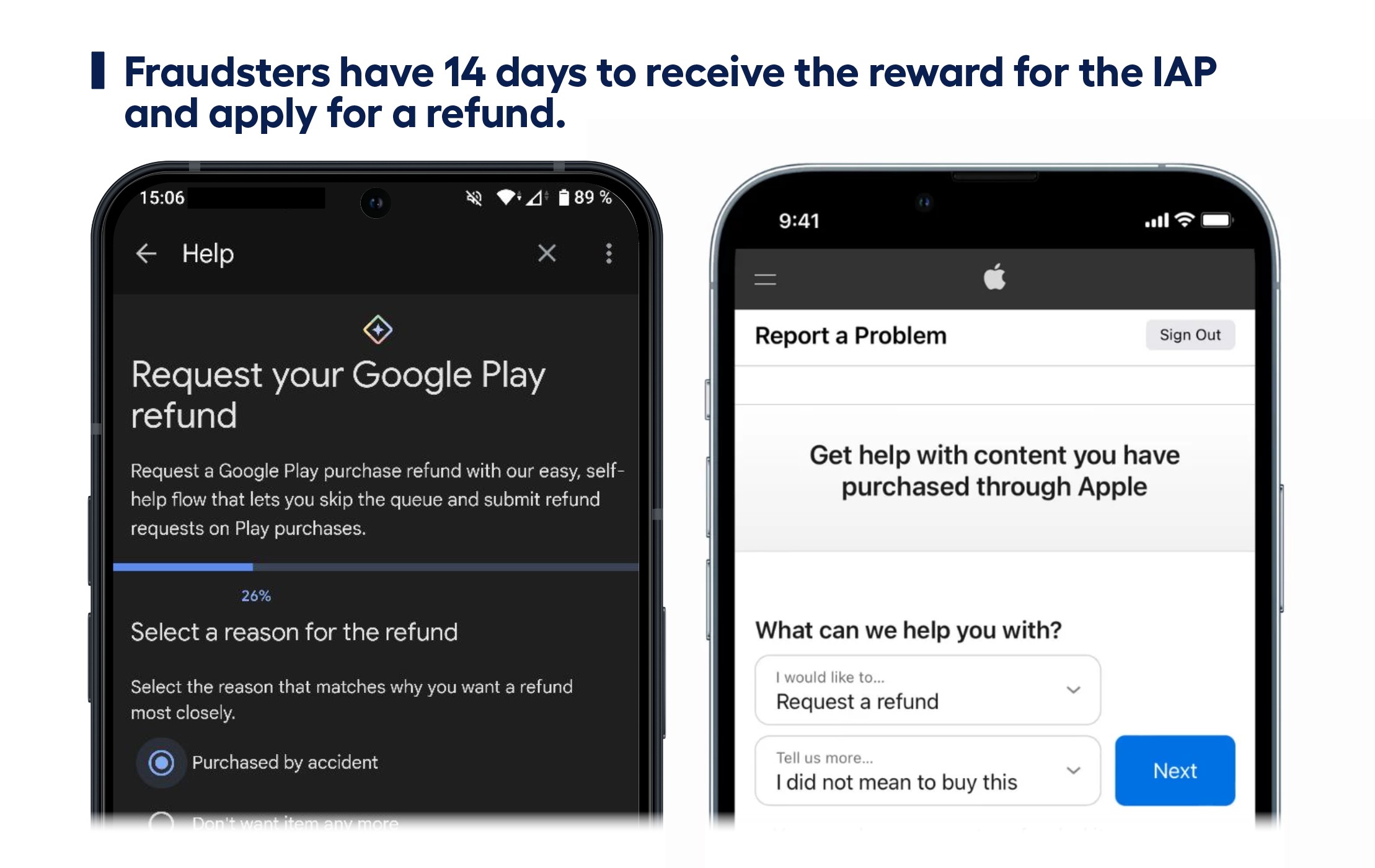 2. They file refund claims with Apple or Google, often citing “unauthorized charges.”