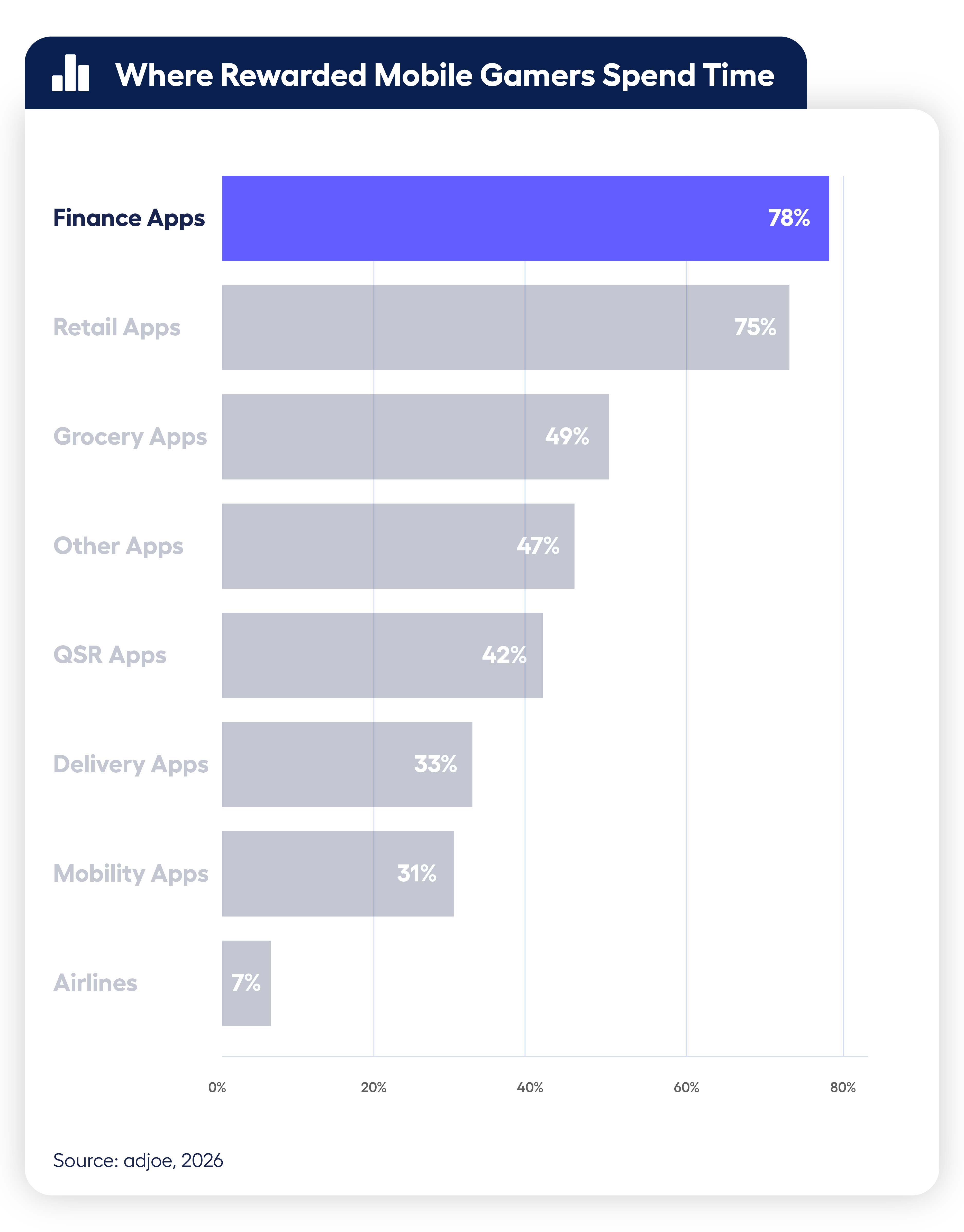 Nearly 79% of users who get rewarded for engaging with games or apps also do their finances on the phone. And what’s important here is that these users rarely rely on a single financial app. Instead, they participate in a broader ecosystem of mobile banking, payments, and financial tools (think Cash App, PayPal, traditional banking apps, and so on).