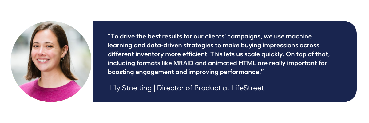 For TaurusX, exclusive, high-quality inventory from direct publishers is equally critical. Their focus on scalable formats like video ensures both performance and flexibility to optimize across different geographies, especially Tier 1 markets like the US, Japan, and Korea. LifeStreet also pointed to the importance of animated MRAID and VAST formats because they not only drive higher engagement through dynamic, interactive features, but also scale efficiently across mobile environments.