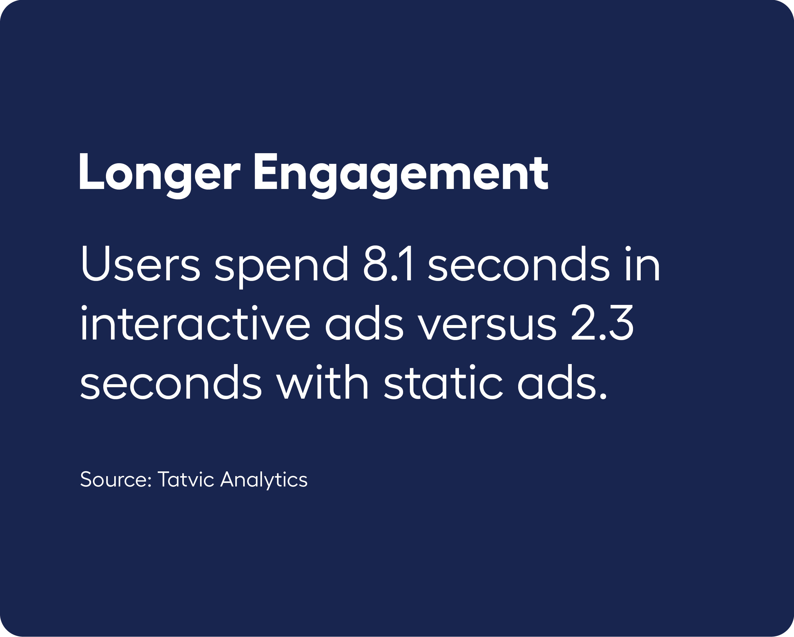 Interactive ads keep users engaged longer than static or standard video formats. Studies show they can boost brand recall by more than 50% and increase the time users spend with an ad by almost half. By turning ads into experiences, they leave a stronger impression on audiences.